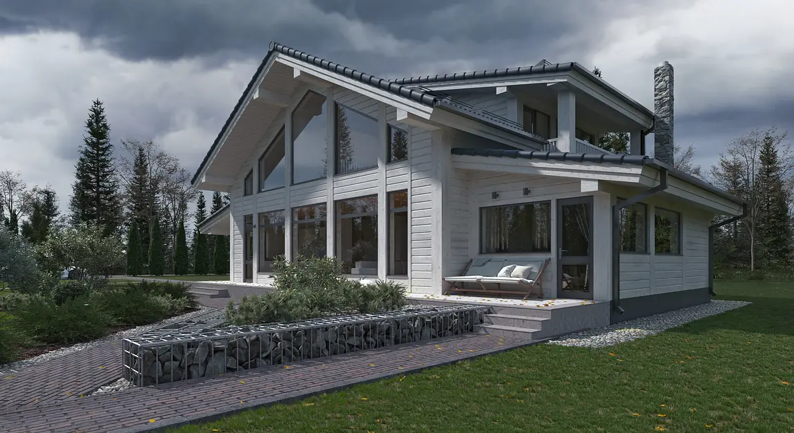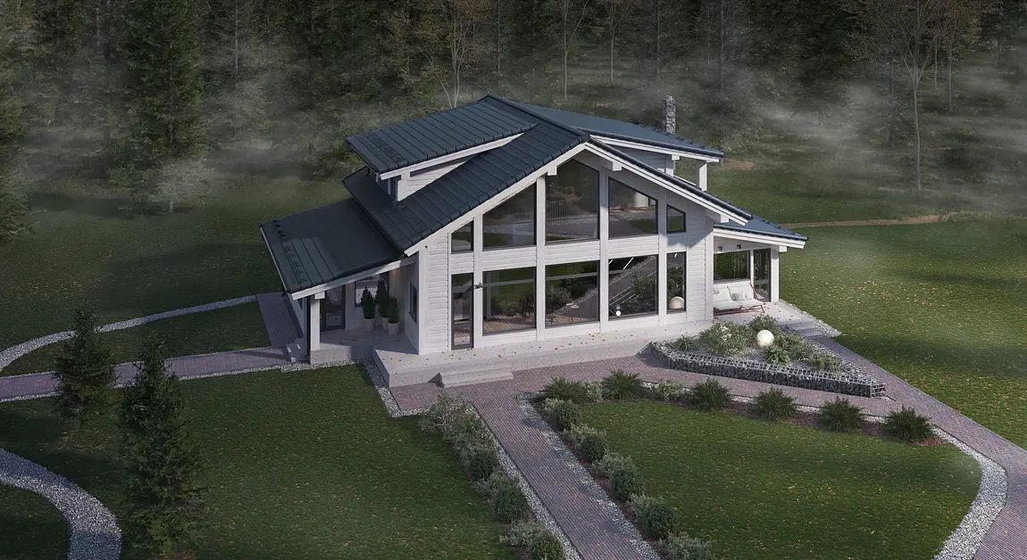 Скандинавская культура проникает в наш быт и жилую среду. Дом получился в лучших традициях северного региона Финляндии. Отличительной чертой является красивая входная группа и большая обходная терраса, которая соединяет крыльцо и зону барбекю. Благодаря этой тенденции мы и Заказчики начинаем смотреть на эргономику участка и внутреннего пространства дома по другому, становясь более открытыми. Не можем не отметить в доме присутствутствие 2ого света, который объеденяет два этажа и дает много света и пространства, совместно с панорамным остеклением.