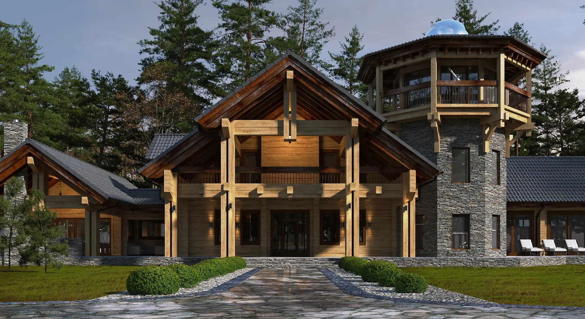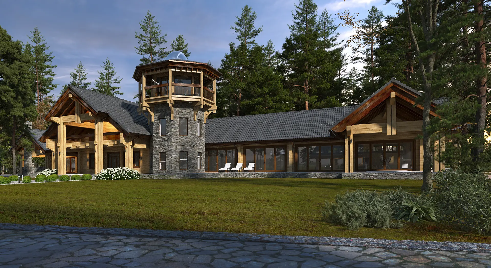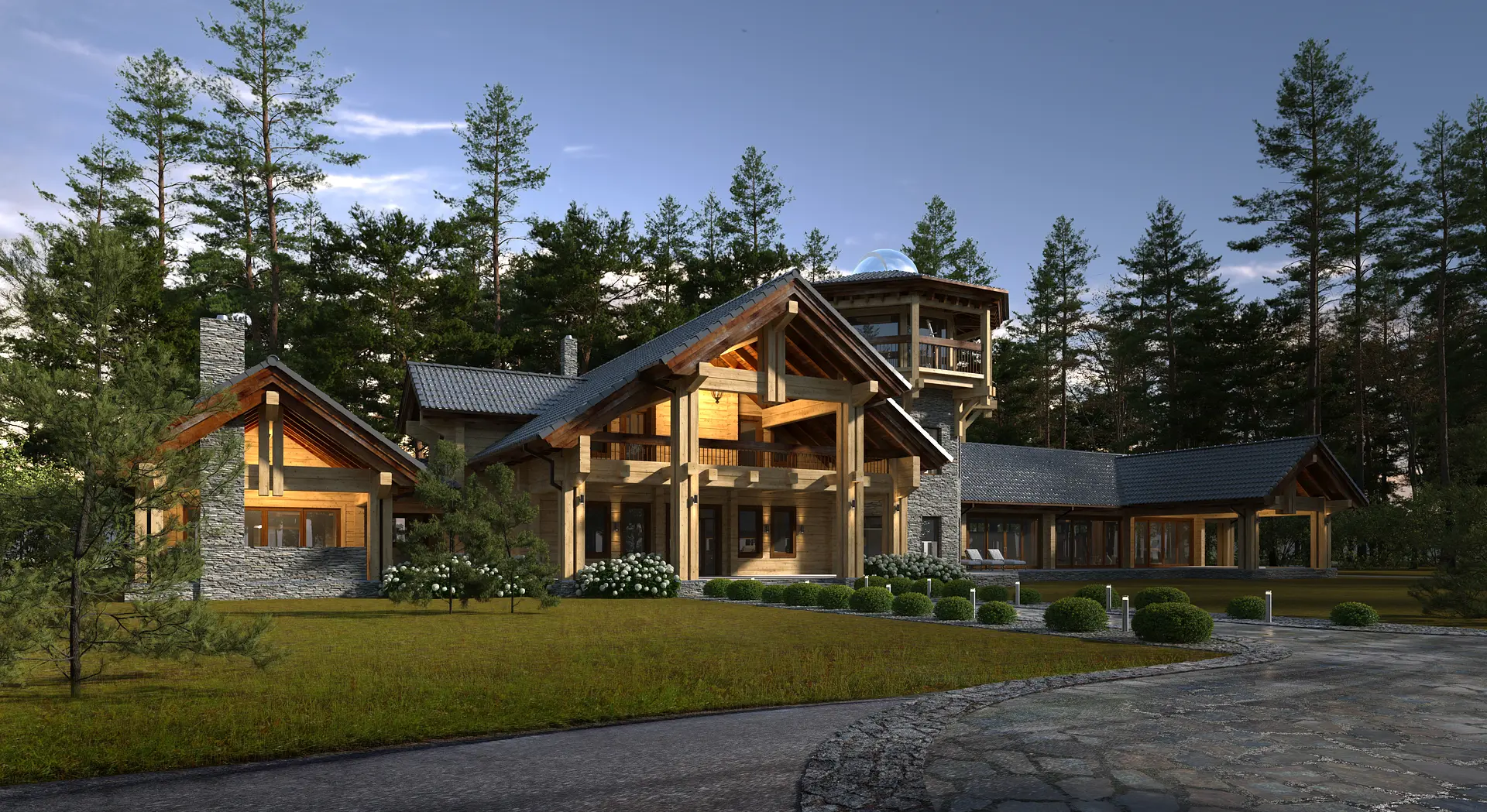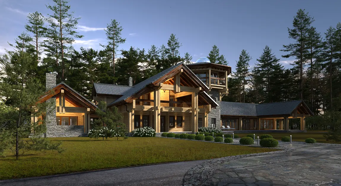 Масштаб и уникальность этого проекта поражают с первого взгляда, и это заметно в каждой детали. В состав усадьбы, расположенной недалеко от озера «Глухое» в Свердловской области, входит многофункциональный комплекс, объединяющий СПА-зону и гараж.