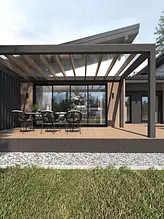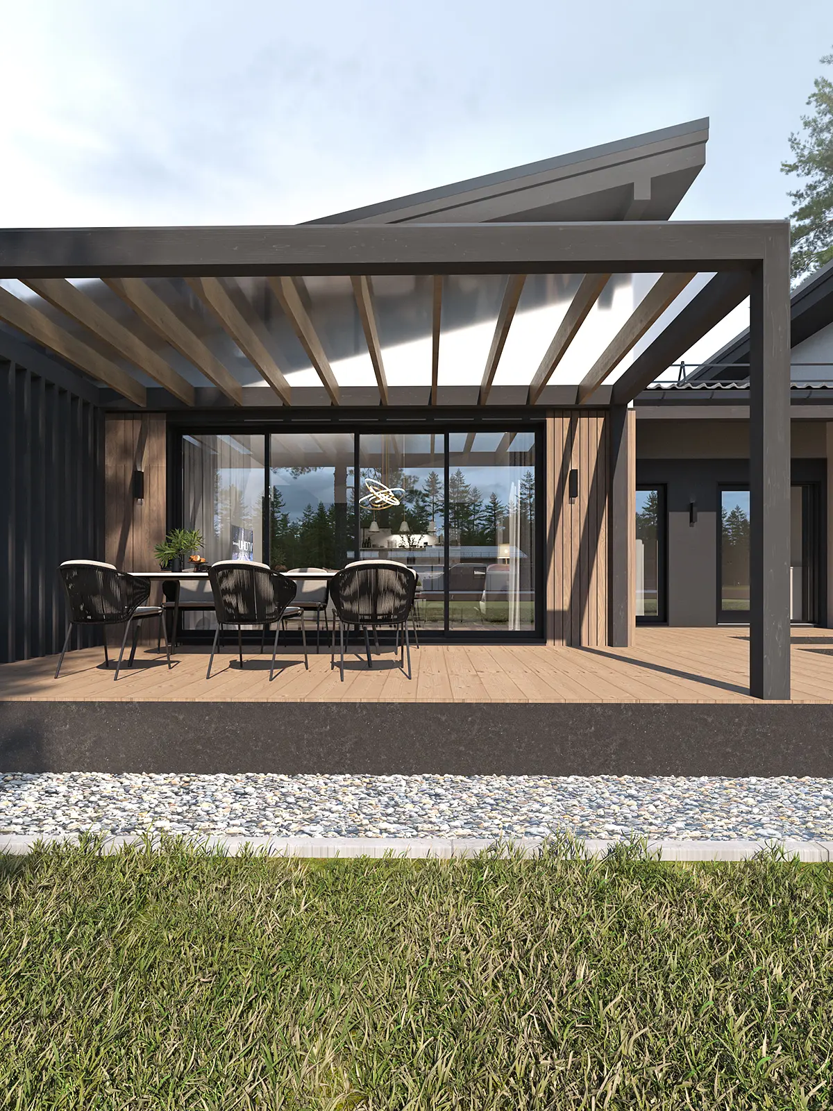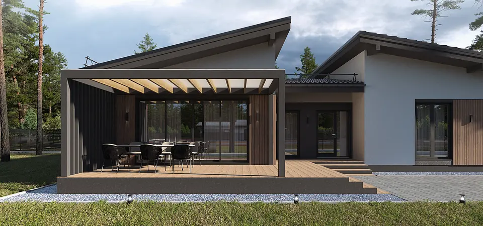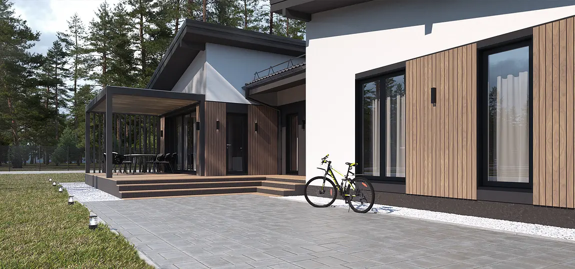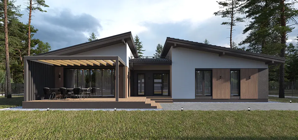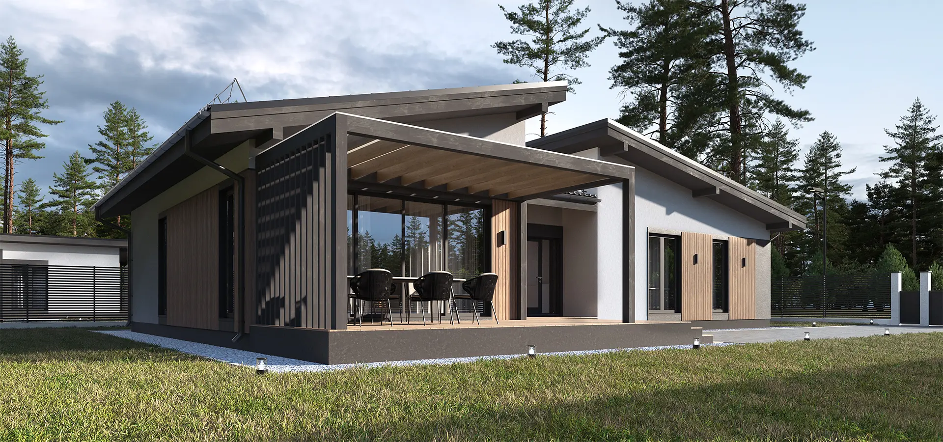 Проект разрабатывался для комплексной застройки жилого района в коттеджном поселке. Застройщиком был выбран единый Скандинавский стиль. Уникальное свойство - планировочное решение, которое может изменятся в своих пропорциях за счет колличества помещений, в зависимости от потребности конечного потребителя. Планировка делится на 3 зоны: общественная, техническая, жилая. Архитектурный код фасада: штукатурка в белом и графитовом цвете, деревянные вставки и элементы.