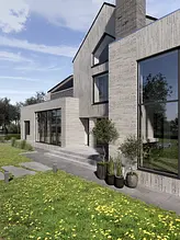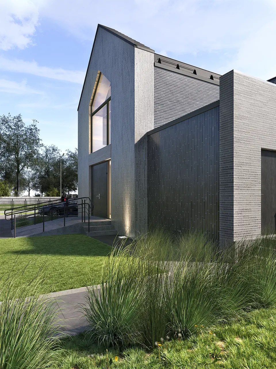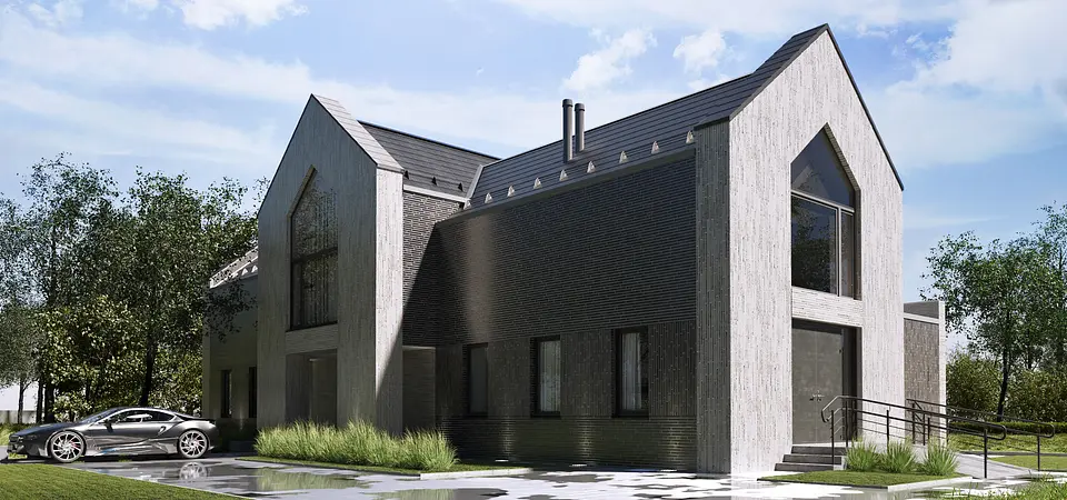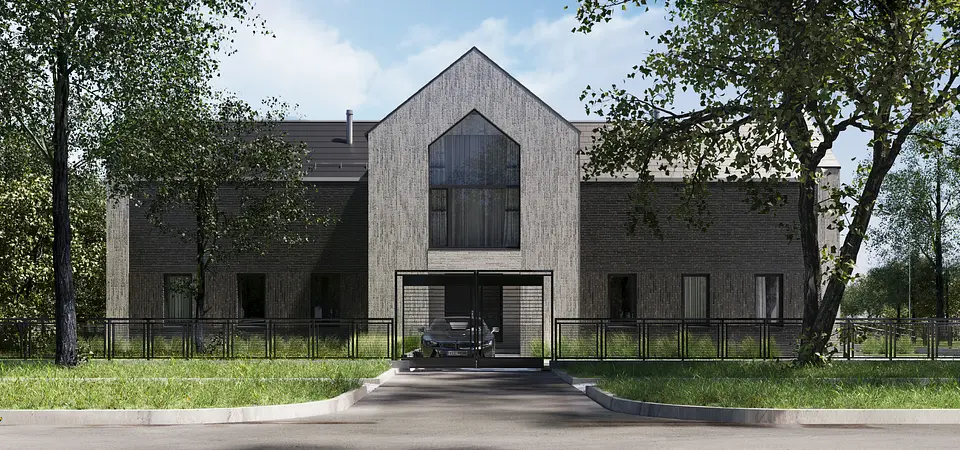 Реконструкция здания, которое строилось не в нашу эпоху и не под наш минталитет. Архитектору пришлось убрать лишнее и пересмотреть назначения большего количества пространства. Сложней всего было работать с экстерьером, старые тендеции сильно ограничивали, таким образом пришлось сильно увеличить проемы, что сильно усложнило последующие работы по изменению конструктива. В итоге получился современный дом в стиле "Барн хаус", который стал украшением жилого городского района.