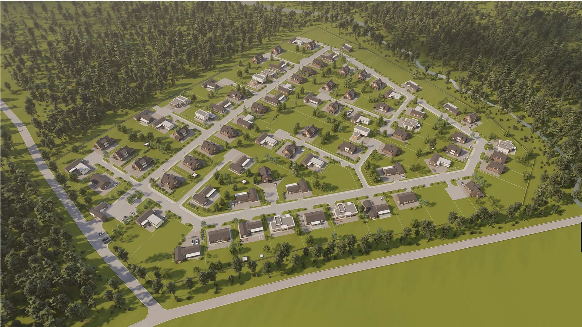 в непосредственной близости с хвойным лесом и живописным ручьём. Значительная часть участков посёлка сможет наслаждать ся прекрасными видами на ручей. А благо даря хвойному лесу, все жители посёлка будут дышать чистым свежим воздухом.